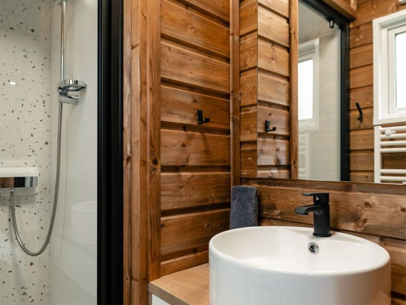 The AMAZONIA mobile home is a real wooden cocoon in the middle of the forest. Its charm lies in the bar opening onto the terrace for convivial moments with friends or family.