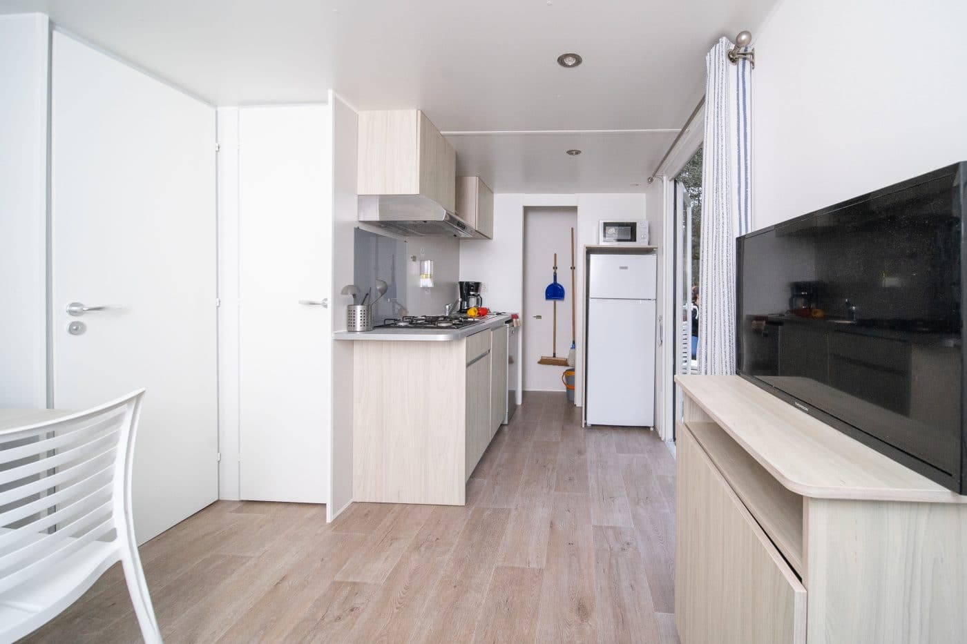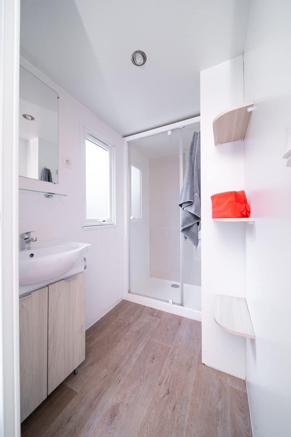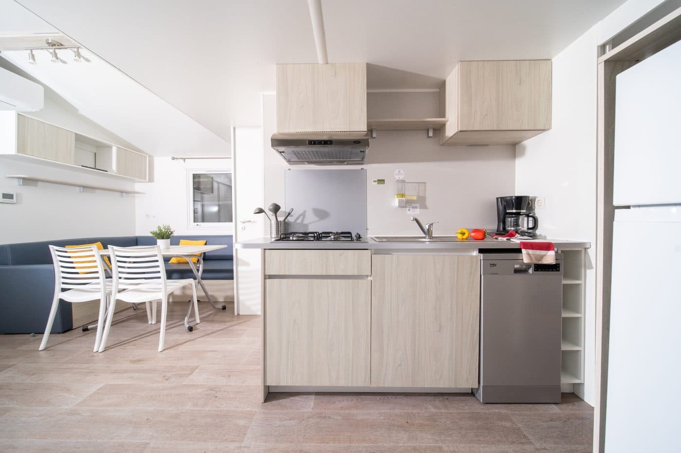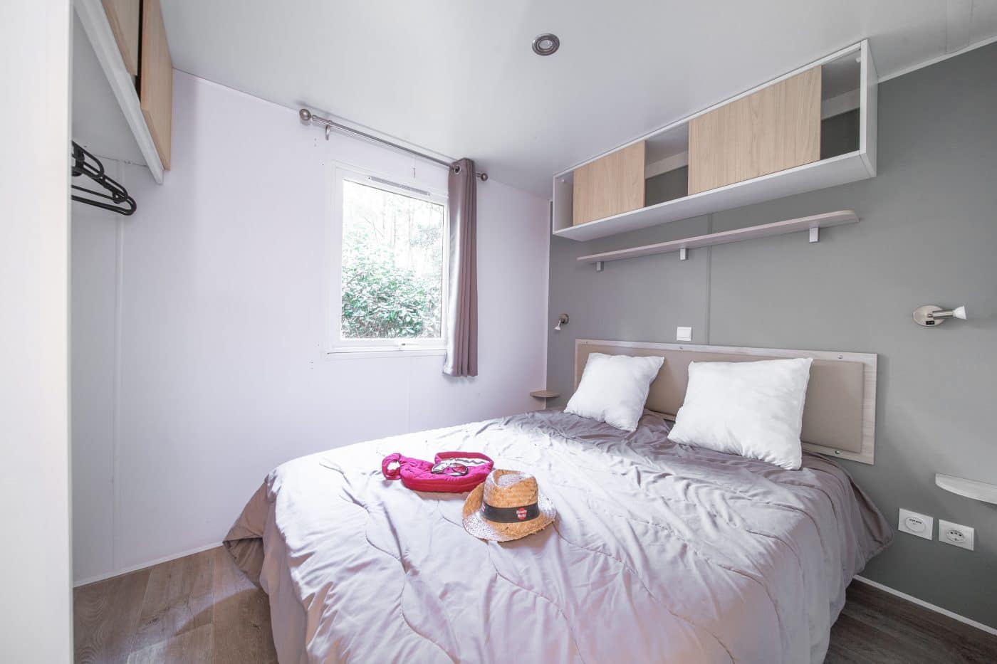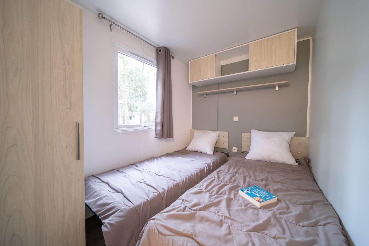 The CALEDONIA mobile home will seduce you with its meticulous decoration. Its cosy interior and large terrace in a wooded setting can accommodate up to 4 people. Ideal for a family, it has one bedroom with a double bed and a second with two single beds.