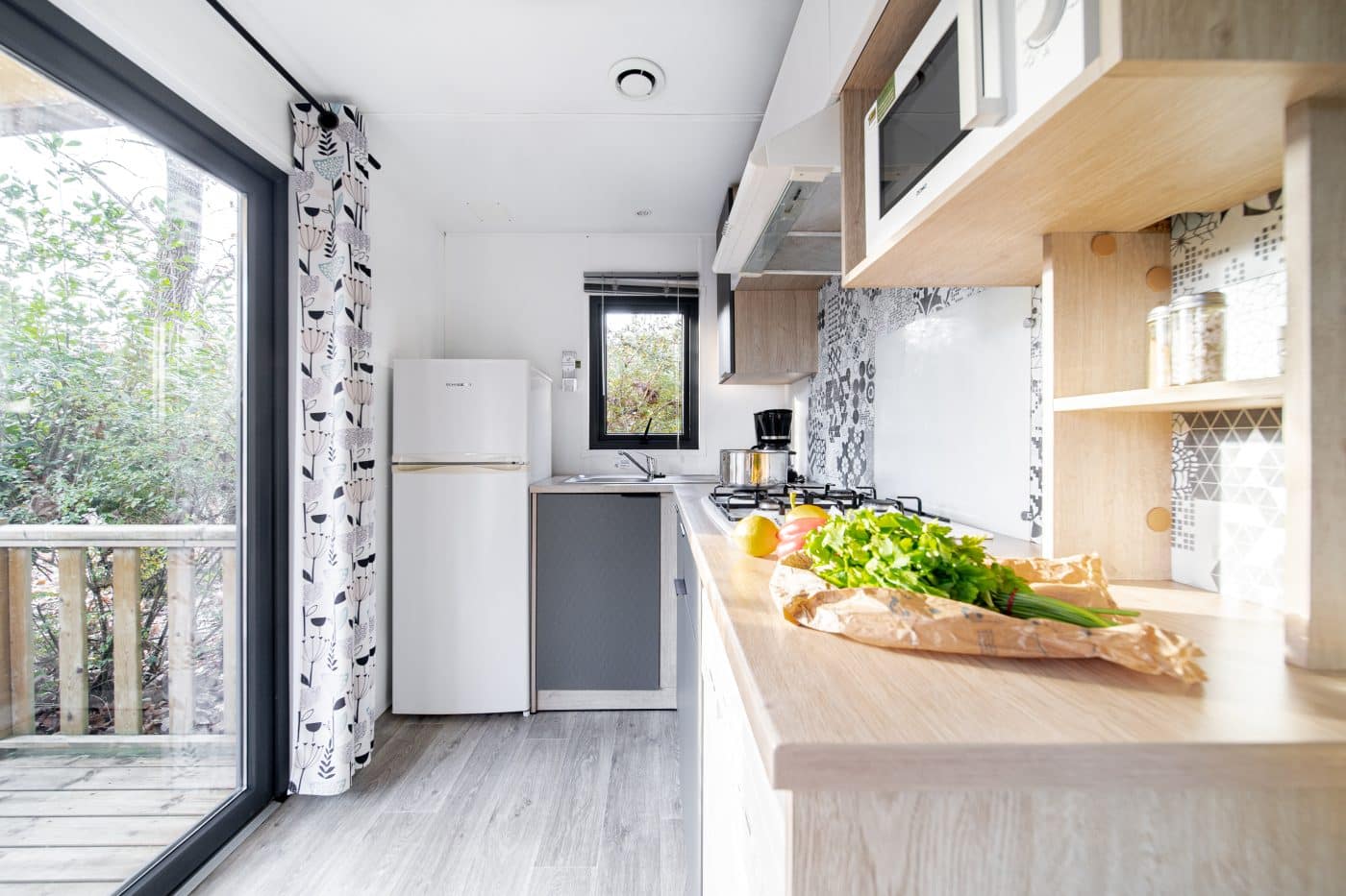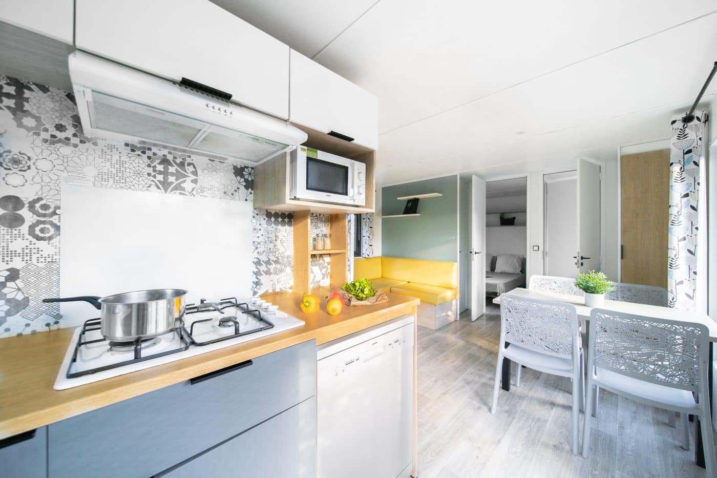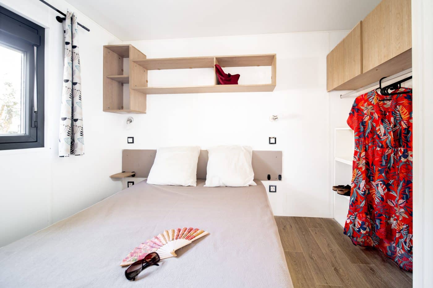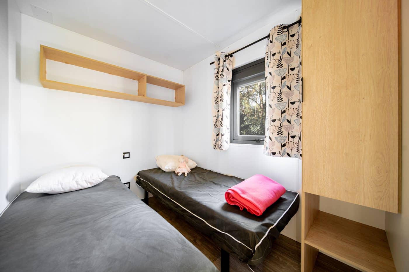 The CEDRIA mobile home will seduce you with its shaded terrace and quality equipment. Ideal for a family, it features a master bedroom with double bed and a second bedroom with two single beds.