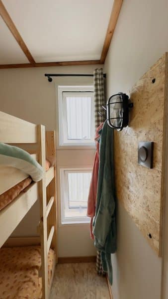 - 1 closed bedroom and 1 sleeping area with curtains