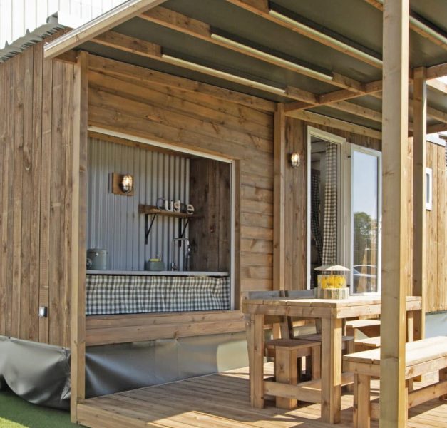 The surprising TYRA is a unique accommodation in the Landes. This 2.0 cabin can accommodate 4 people in its optimized interior and exterior space.