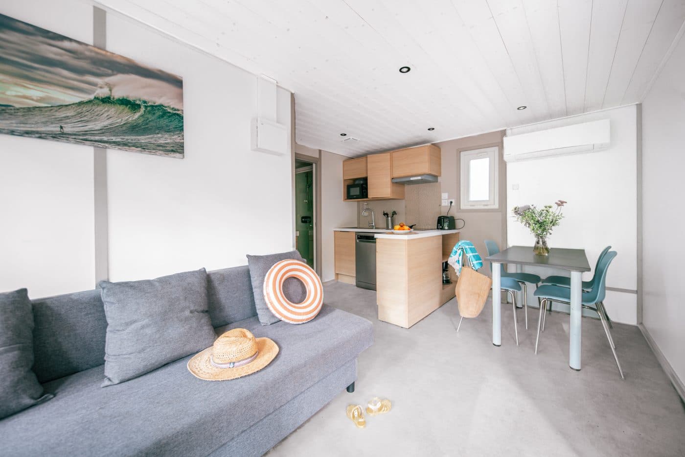 Le chalet DUNE vous séduira pour sa décoration soignée. Son intérieur spacieux et sa grande terrasse au cœur d’un environnement boisé permettent d’accueillir jusqu’à 4 personnes. Il dispose de deux chambres avec chacune sa salle de bain.